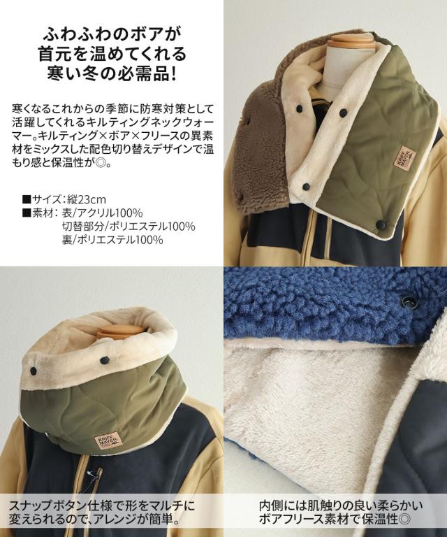 キルティング×ボア×フリースの異素材をミックスした配色切り替えデザインで温もり感と保温性が◎。