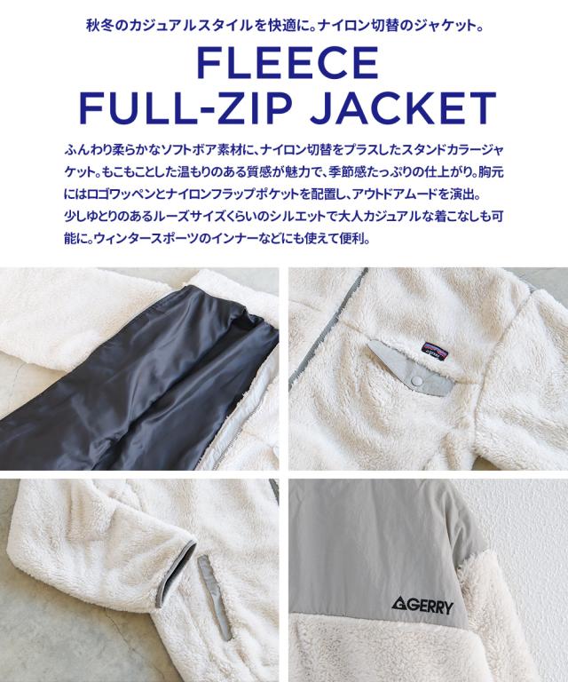gerry フルジップジャケット メンズ フリース ジャケット レディース ナイロン切替 総裏 ブルゾン アウター 冬 ジップ ブランド ロゴ カジュアル ストリート アウトドア キャンプ ピクニック レジャー 大人 旅行 アメカジ ファッション 黒 白 ジェリー