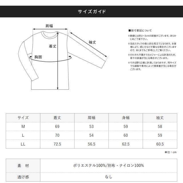 LL:身幅62.5cm 肩幅56.5cm 着丈72.5cm 袖丈60.5cm 重量650g