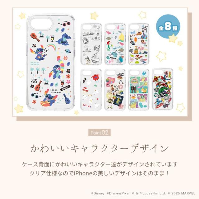 「ディズニーキャラクター インナーシート付き クリアハイブリッドケース for iPhone 17e/16e」が登場。