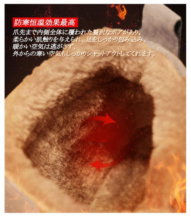 | 【防寒恒温効果最高】 爪先まで内側全体に覆われた贅沢なボアがあり、柔らかい肌触りを与えられ、足をしっかり包み込み、暖かい空気は逃がさず、外からの寒い空気もしっかりシャットアウトしてくれます。 【雪や氷など濡れた道でも滑りにくい!】 春秋冬にぴったり防寒ブーツ ヒールの素材はゴムので、雪、雨の日に滑りにくい 分厚く凹凸のあるソールで、悪路もしっかり捉えるアウトソール グリップ力のある アウトソールは濡れた地面や雪道などの悪路でも歩きやすく、野外での活動をしっかりサポートしてくれます。また、軽量のため長時間履いて活動しても疲れにくい点が魅力。 | |