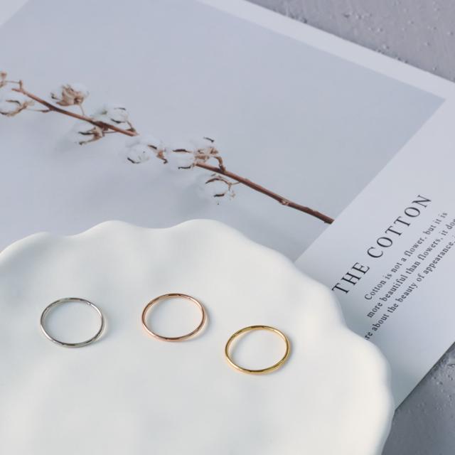 変色しにくい、変形しにくい、傷が付けにくい、 金属アレルギーに強いサージカルステンレスの指輪です。 シンプルで1mm幅の華奢で細身なデザインのリング。 1本でさりげなく上品に、重ね付けでより指元を華やかに演出してくれます。 重さも感じず365日ずっとつけたくなるリングです♪ |