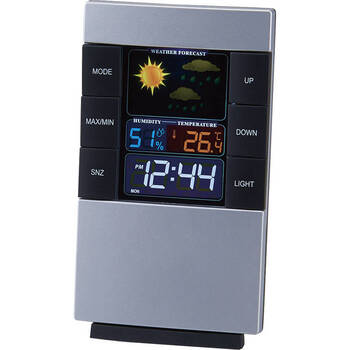 天気予報、温度、湿度がカラー表示される見やすい多機能時計です。