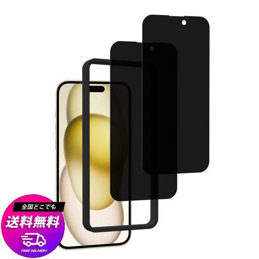 HKKAIS 左右の視野 のぞき見防止 IPHONE16 / IPHONE 15 用 覗き見防止 ガラスフィルム 日本製硝子採用 強化 ガラス 液晶画面 プライバシー 保護フィルム【2 枚+ ガイド枠】