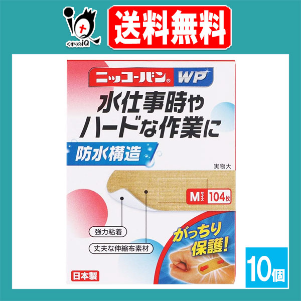 ニッコーバンWP Mサイズ 104枚入×10個セット【ニッコーバン】【日廣薬品】No506 水仕事時やハードな作業に 防水構造 がっちり保護 絆創膏 防水 肌色 目立たない ばんそうこう 傷テープ 強力粘着