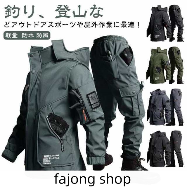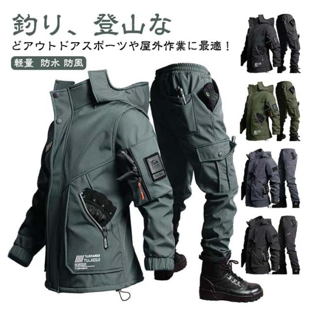 セットアップ メンズ 大きいサイズ 裏起毛 上下セット 撥水 作業服 登山服 釣り ウインドブレーカー 防風 防寒 アウトドア ジャケット パンツ 裏ボア マウンテンパーカー ミリタリー 男女兼用 秋冬 冬服