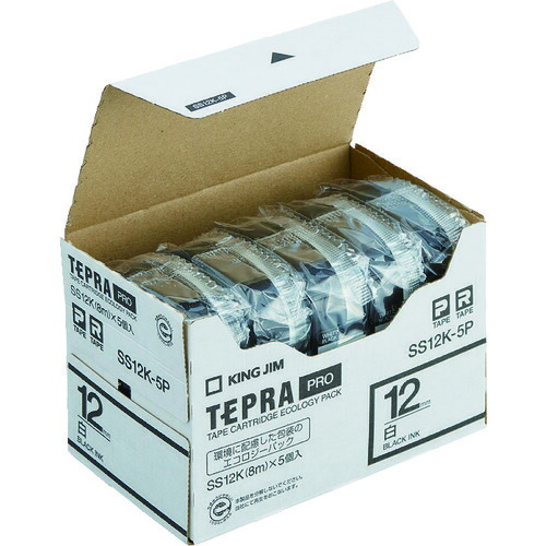 キングジム(KING JIM) 【純正】「テプラ」PROテープ 12mm エコパック(5個入り)/白ラベル/黒文字 長さ8m 【品番:SS12K-5P】