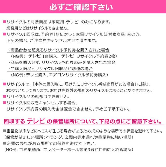 【リサイクルのみご希望のお客様向け】 テレビ リサイクル予約券 リサイクル券 【代引き不可】