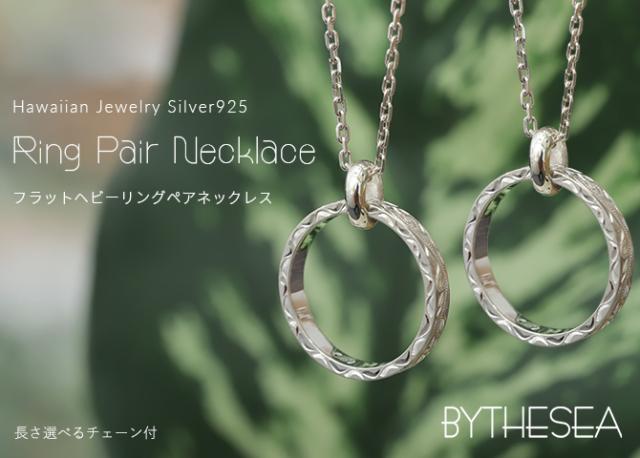 ハワイアンジュエリー ペアネックレス 2個セット スクロール シルバー リングネックレス 刻印無料 誕生石入れ可 シルバー925 チェーン付 長さ選べる BY THE SEA バイザシー プレゼント お正月 成人祝い 【品番:CG-SP34P】