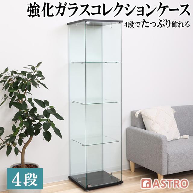 コレクションケース 4段 フィギュアケース 高さ162cm 強化ガラス 全面ガラス コレクション ディスプレイ ガラス棚 大型 コレクションラック キャビネット インテリア 収納棚 扉付き ショーケース 組立商品 クリア×ブラック アストロ 515-12