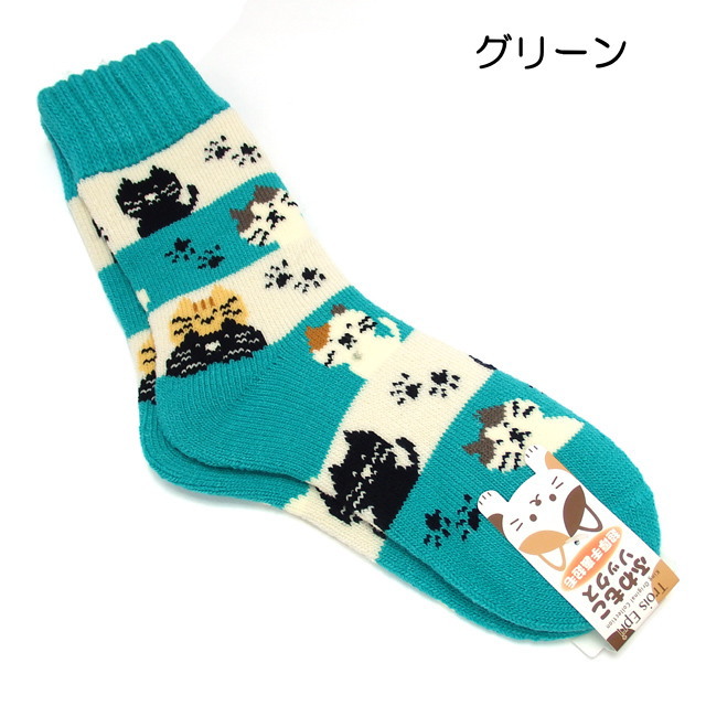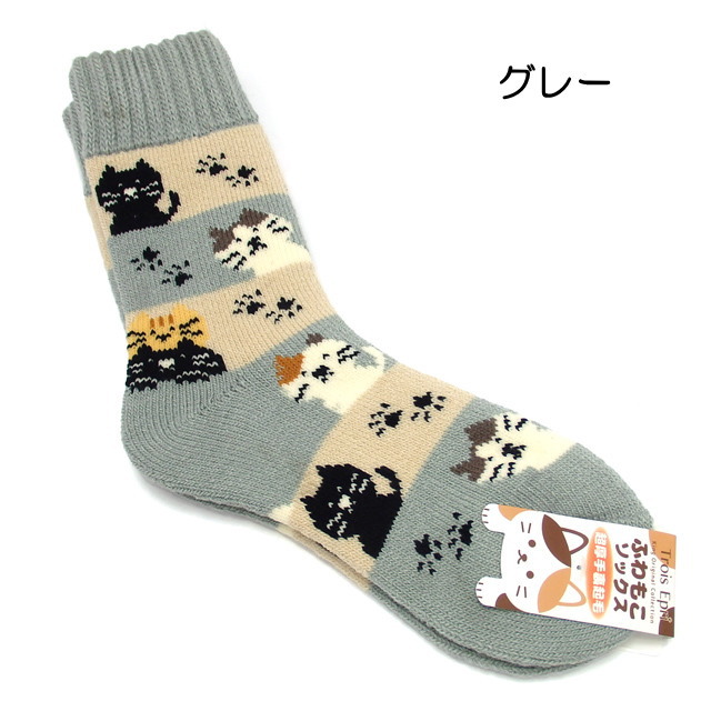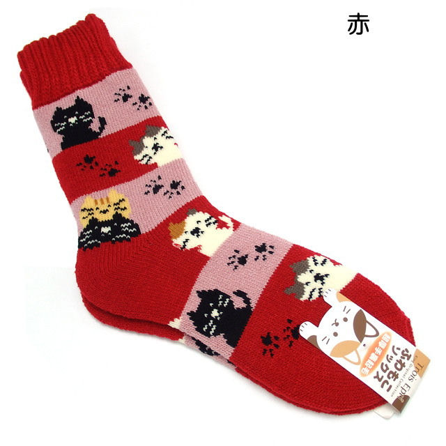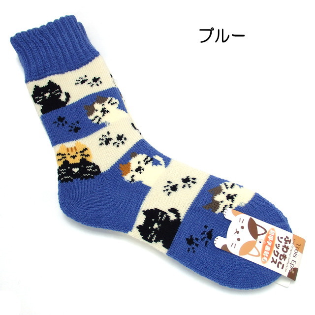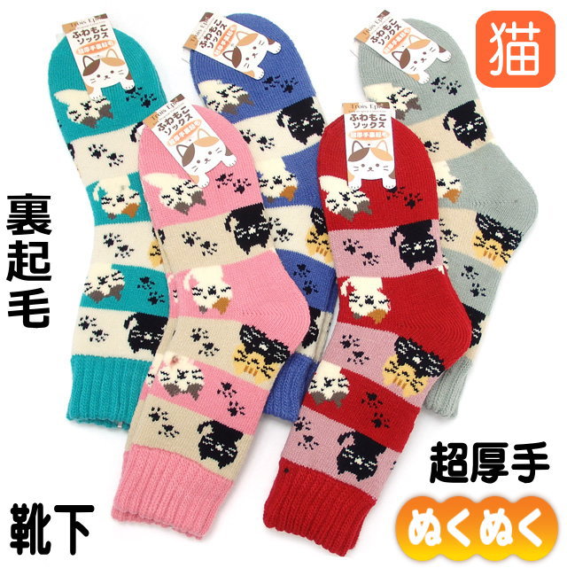 靴下 猫柄 ソックス 厚手 裏起毛 極暖 ルームソックス あったか 秋冬 レディース クルーソックス 22〜25cm かわいい おしゃれ ギフト プレゼント 粗品 景品【 誕生日 】