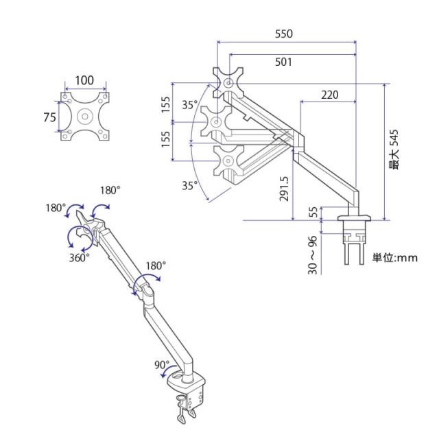 ■対応モニター:VESA規格対応 (75mm x 75mm または100mm x 100mm)