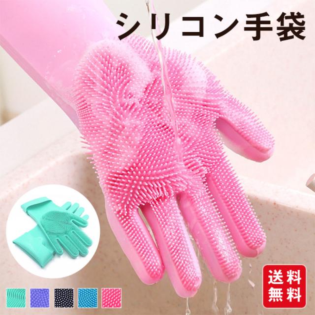 ★4/20まで10%OFFクーポン★シリコン手袋 ゴム手袋 2組み キッチングローブ ブラシ付き 掃除手袋 突起付き 左右セット 食器洗い 野菜果物洗い 泡立ちやすい 手荒れ予防 キッチン手袋 キッチン グローブ ブラシ 多機能 手袋 掃除グッズ 便利グッズ 雑貨 お風呂掃除
