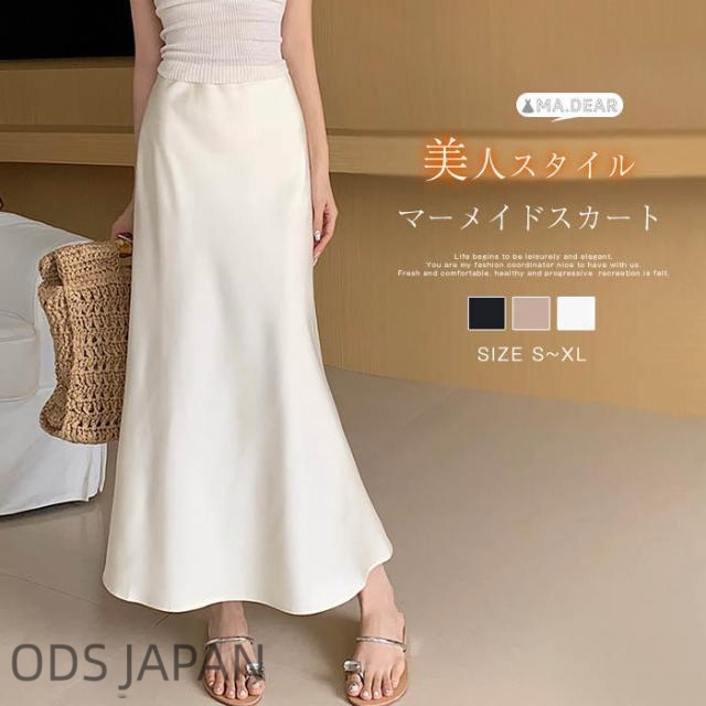キーワードマーメイドスカート サテン レディース ボトムス ロング丈 サテンスカート ロングスカート フレアスカート マキシ丈 ロング フレア マーメイド 無地 光沢 Aライン きれいめ 大人 フェミニン エレガント おしゃれ 着回し お洒落 着心地 サテン素材 リラックス 普段着 通勤