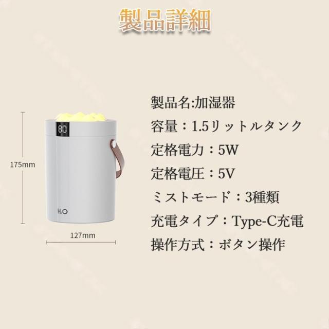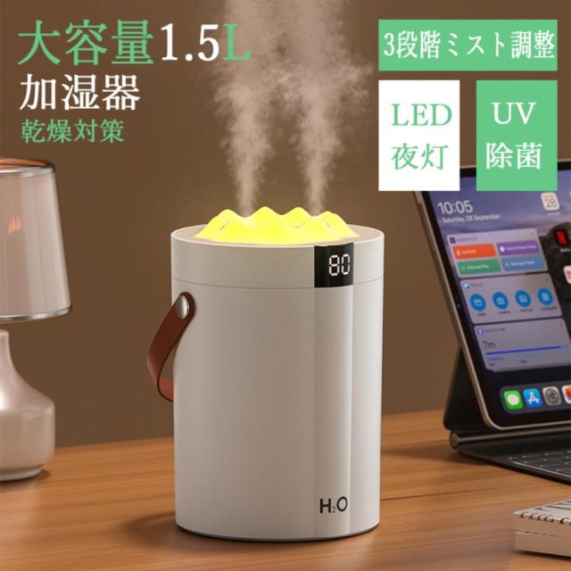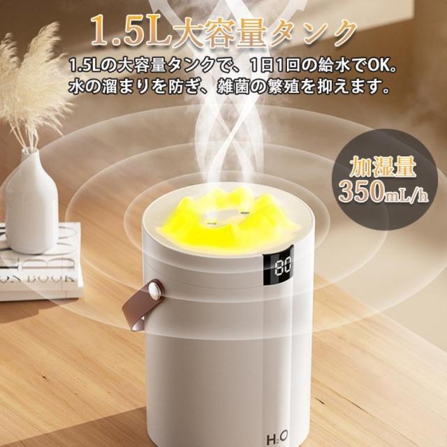 加湿器 卓上 小型 コンパクト 1.5L大容量 アロマオイル加湿器 超音波式 卓上 最大10時間 3段階調節 上から給水 静音 自動停止機能 噴霧式 かわいい 花粉対策