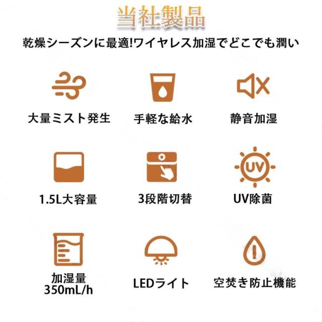 本商品はハイブリッド式加湿器や超音波加湿器などと違って、水を気化して噴霧し、清潔で健康的な加湿を実現した气化式加湿器です。加熱することもなく、白い粉などが発生しないのでお子様やペットのいるご家庭でも安心して使用できます。独特の構造設計により、運転中にタンクに水を追加することもできます。蓋を外す必要はなく、蓋に付いた水滴が垂れる心配もありません。乾燥する時期にとても便利で実用的な加湿器です。お部屋に潤いを与えるだけでなく、アロマにも対応しており、必要に応じてアロマの香りも楽しめます。