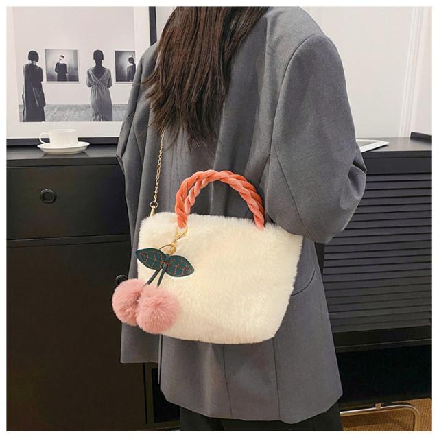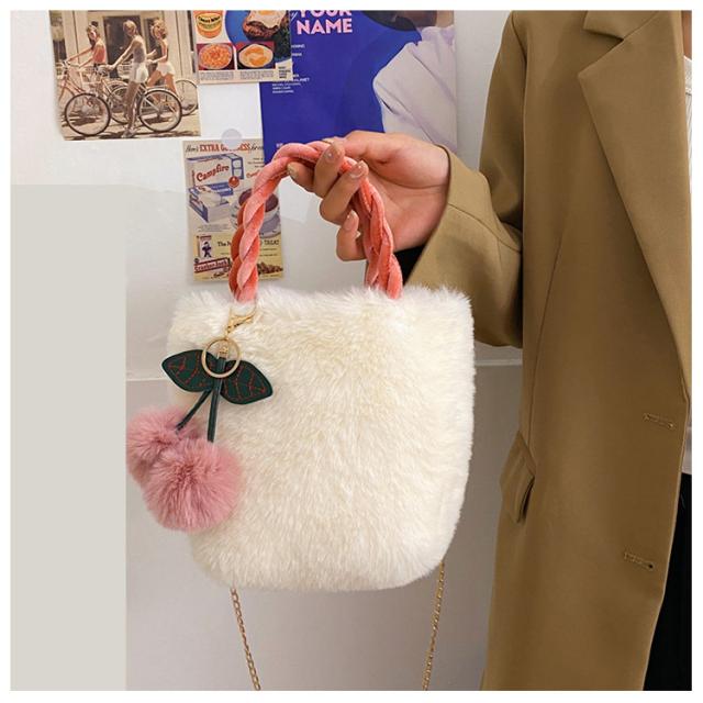 ファーバッグ、チェリーバッグ、2wayバッグ、ショルダー、手提げ、秋冬、軽量、小さめバッグ、かわいい、ふわふわ、ミニバッグ、チェーンバッグ、コンパクト、レディースバッグ、プレゼント、おしゃれ、冬コーデ