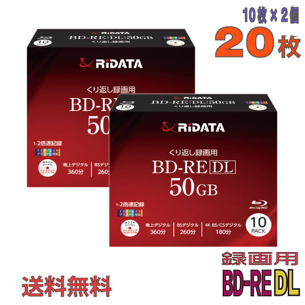 【ブルーレイディスク】【MID:MEI-T01-001 Panasonicスタンパー使用】 RiDATA(ライデータ) BD-RE DL 録画用 50GB 1-2倍速 ワイドホワイトレーベル 【20枚(10枚×2個)スリムケース】 (BE260EPW2X.10P SC A 2個セット) 【送料込み※沖縄・離島・一部地域を除く】 【KSW】