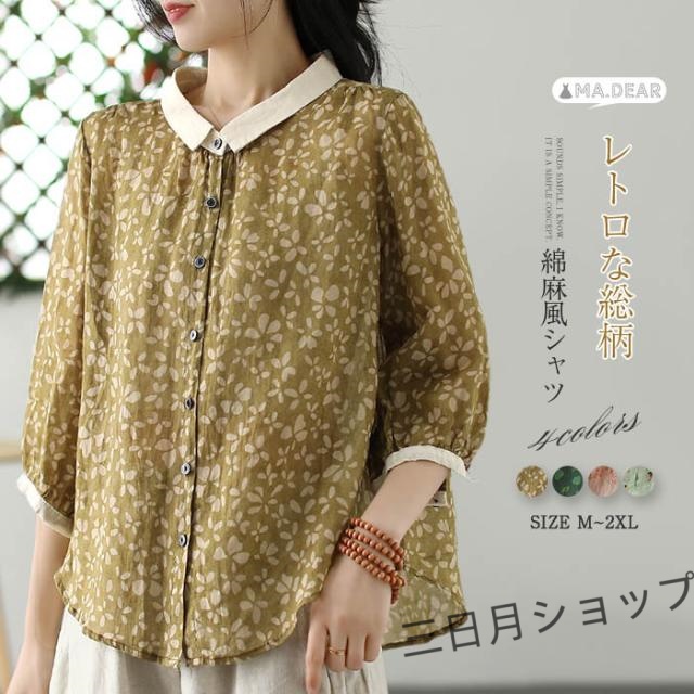 キーワードシャツ レディース 夏 七分袖 柄 トップス コットン レディースシャツ シャツブラウス レディーストップス 前開きシャツ 七分袖シャツ 花柄シャツ 総柄シャツ 夏トップス 夏シャツ 通勤シャツ 配色トップス 大人トップス 総柄 柄 シンプル 大人 花柄 配色 綿混 7分袖