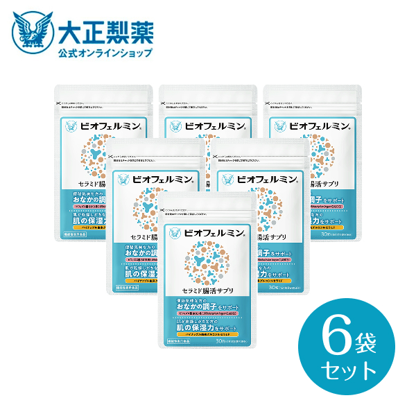 【公式】大正製薬 ビオフェルミン セラミド腸活サプリ 30粒 6袋セット ビフィズス菌 セラミド 機能性表示食品 サプリメント インナーケア おなか 便秘 乾燥 乾燥肌 うるおい 潤い 潤いケア
