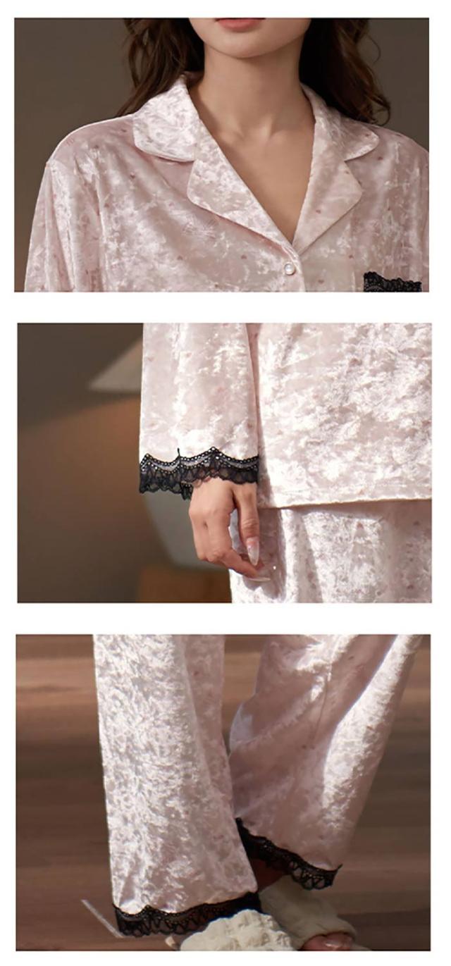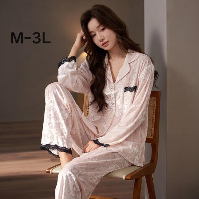 パジャマ レディース 前開き 春 秋 おしゃれ ルームウェア 可愛い 長袖 上下セット トップス パンツ ズボン ウエストゴム 部屋着 寝間着 ピンク M-3L ns007m6m6m6