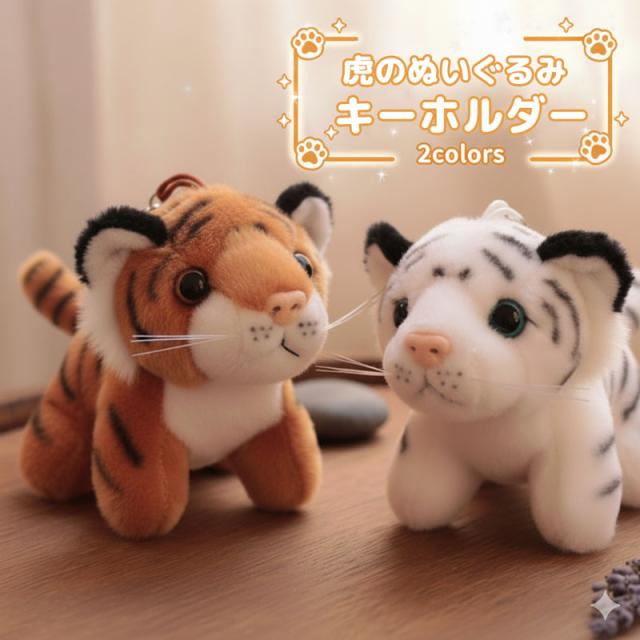 送料無料 2カラー ぬいぐるみ キーホルダー マスコット チャーム 動物 アニマル 虎 トラ タイガー ホワイトタイガー 白虎 ふわふわ かわいい バッグ プレゼント ギフト ストラップ お揃い 干支 キーリング キーチェーン