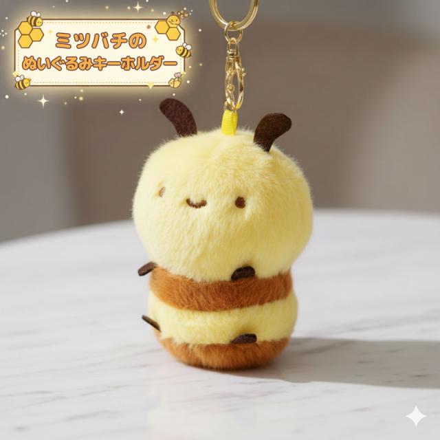 毎日連れて歩きたくなる、ふわふわもちもちな触感のミツバチのぬいぐるみキーホルダーです。