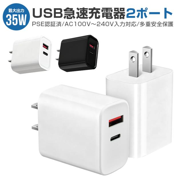 USB充電器 2ポート 高出力 USB コンセント 同時充電 充電アダプタ 急速 高速充電 35W出力 ACアダプタ 充電器 iPhone iPad Xperia galaxy