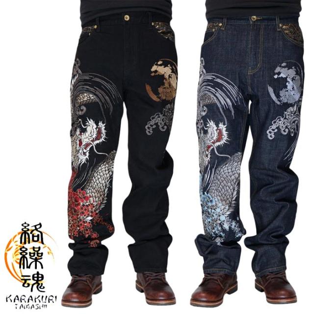 絡繰魂 カラクリダマシイ 和柄 ジーンズ デニム 粋 メンズ 総刺繍 龍 254247