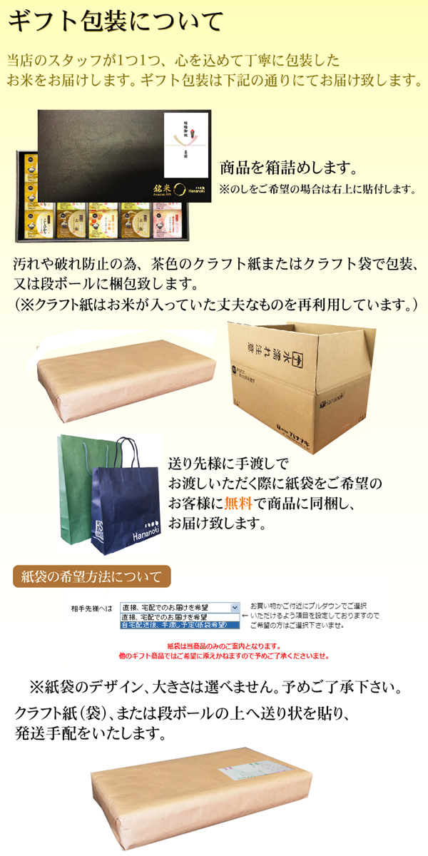 手渡しの贈り物としてご利用いただく際は「自宅配送後、手渡し予定(紙袋希望)」をお選び下さい。(紙袋は無料。紙袋ご希望の場合はダンボールにギフトセットと紙袋を同梱してお届けします)