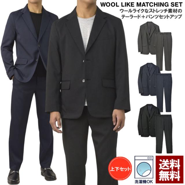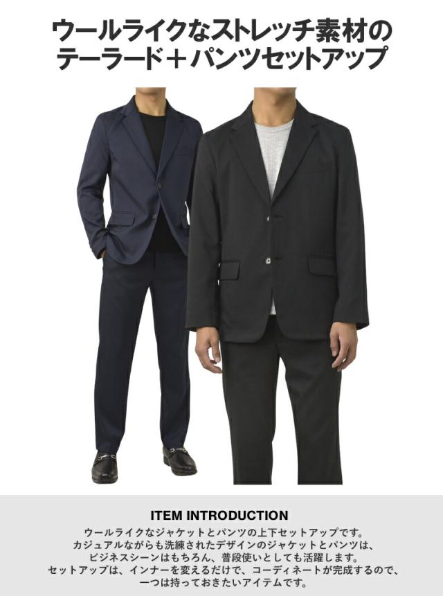 スーツ メンズ セットアップ 洗えるスーツ カジュアルスーツ テーラード ジャケット ノータックパンツ ストレッチ 紳士 ウールライク【A3J】