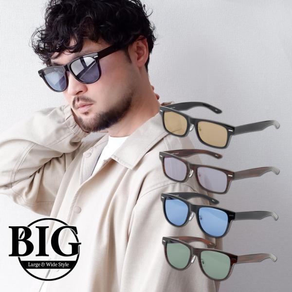 サングラス 最大級 度付 度なし カラー 大きい メンズ ビッグ スクエア ウェリントン おしゃれ 黒縁 60サイズ 頭が大きい 大きい顔 ぽっちゃり