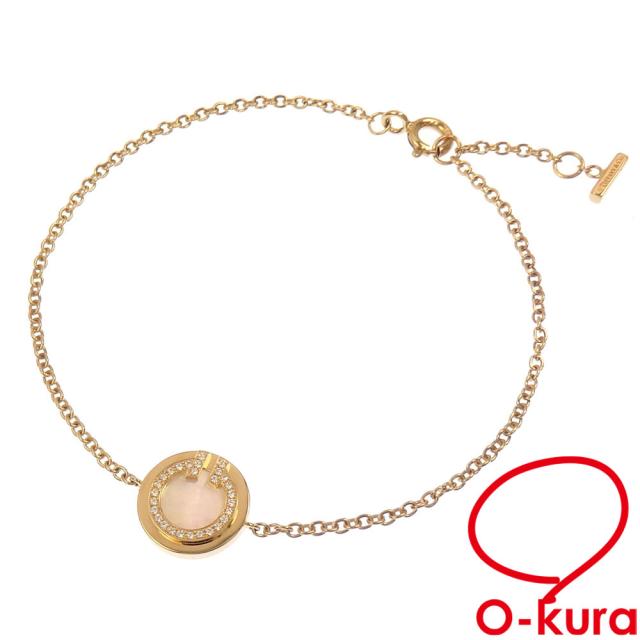 中古 ティファニー Tサークル ブレスレット レディース マザーオブパール ダイヤモンド K18YG 2.9g 18金 イエローゴールド 750