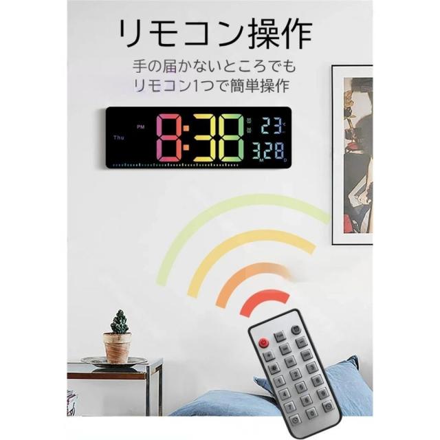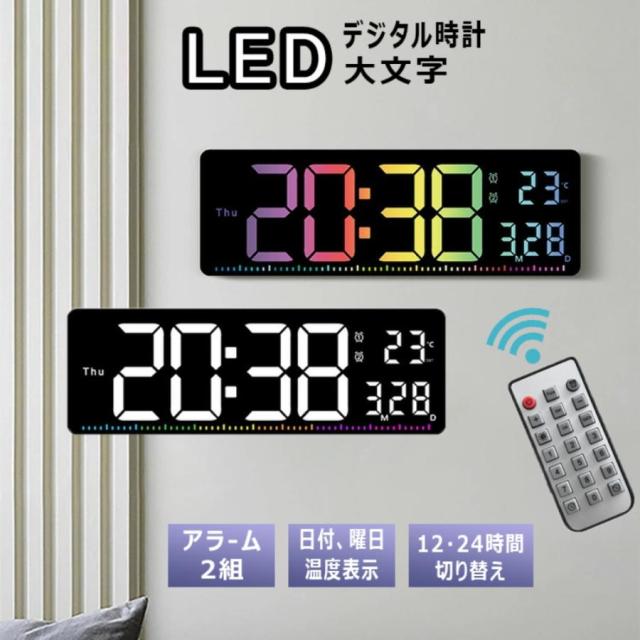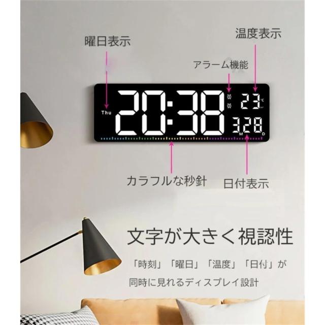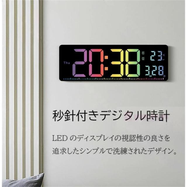 デジタル時計 壁掛け 大型 おしゃれ 見やすい 大きな文字 目覚まし時計 気温/日付表示 デジタル時計 壁掛け 光る LEDライト 照明 モダン リビング オフィス