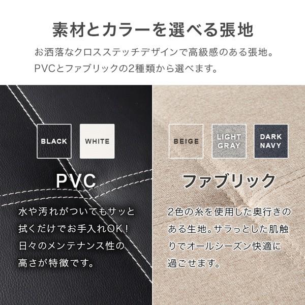| 素材 | 構造部材:天然木、脚部:塩化ビニール樹脂、張地:<ブラック・ホワイト>合成皮革<ベージュ・ダークネイビー・ライトグレー>ポリエステル |