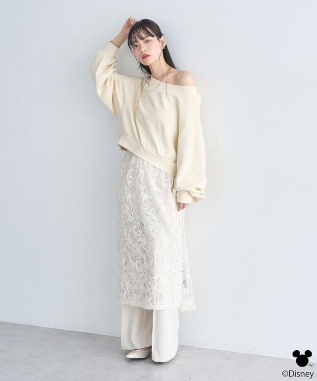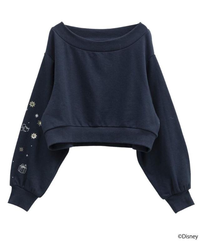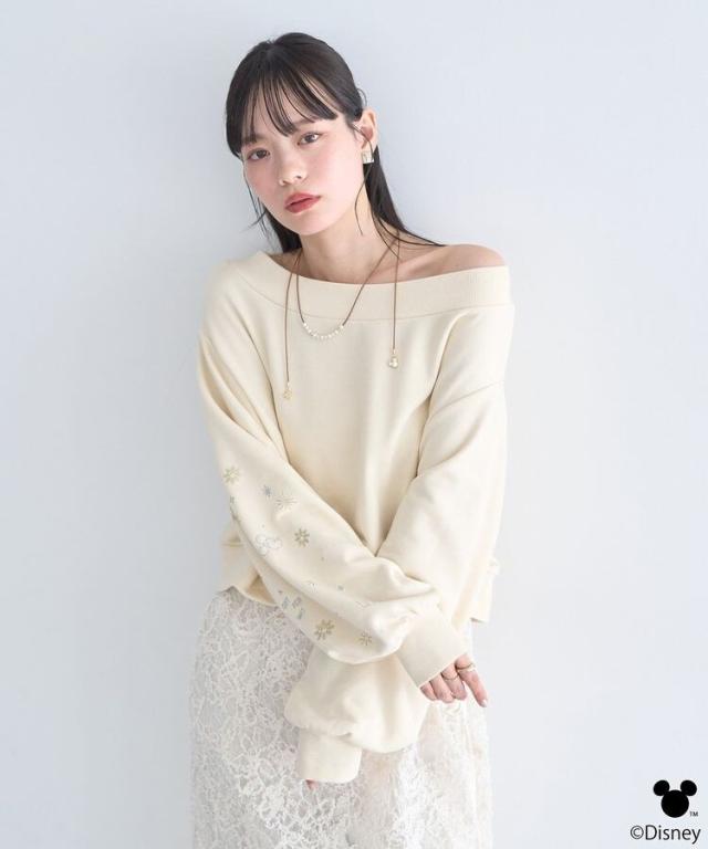Disney/キラキラモチーフ刺繍オフショルスウェット