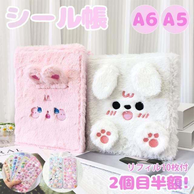 A6 A5 シール帳 可愛い動物デザイン A6 A5 シール帳 リフィル10枚付 バインダー 女の子向け 格内ページ10枚付き ふわふわ シール バインダー付き A5 6穴 リフィル シール台紙 剥離紙 シール帳 兎 猫 犬