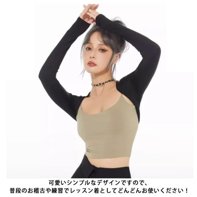 | コーデしやすい秋冬ダンスウォームアップ 最適アイテム! 寒い季節だけでなく夏の冷房対策としても全年中ご利用いただけます。 弾力性のある素材で柔らかく、より身体にフィットして動きやすいです。 体温調節に必要の一着!生地は薄過ぎず厚過ぎず、寒い時期のレッスンには必須の1着です! ボレロタイプなので、気軽に着脱ができます。 激しく動いても、ほどける心配もありません! 可愛いシンプルなデザインですので、普段のお稽古や練習でレッスン着としてどんどんお使いください! | |