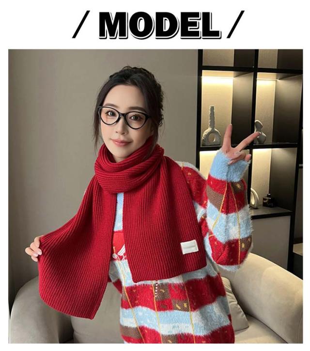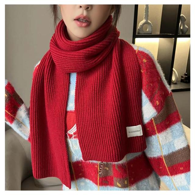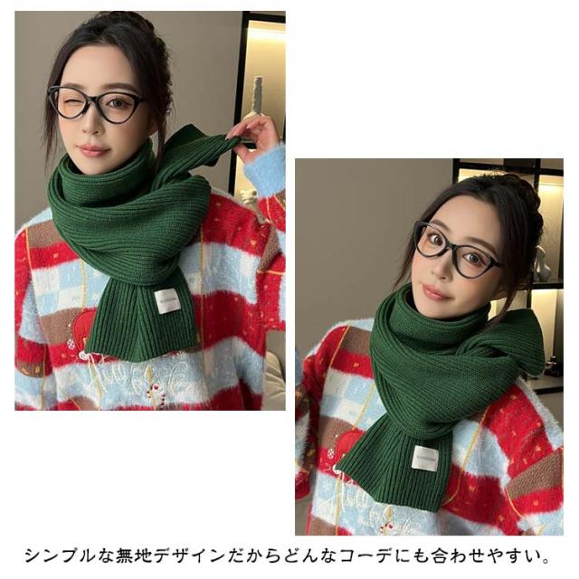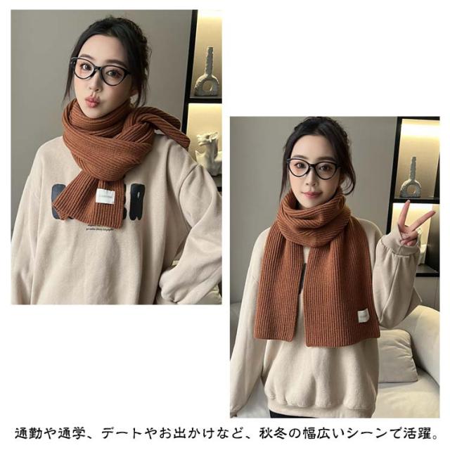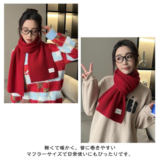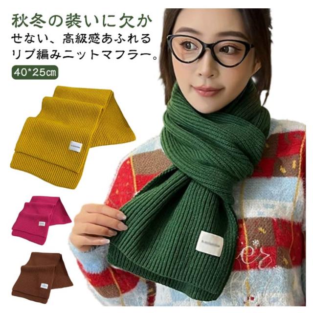 ニット マフラー リブ編み レディース ストール ニットマフラー ショート ミニ 単色 無地 かわいい おしゃれ アクリル 柔らかい チクチクしない 秋 冬 暖かい 防寒 保温 寒さ対策 ネックウォーマー 通勤 通学 大人 カジュアル 韓国マフラー 赤 レッド クリスマス プレゼント