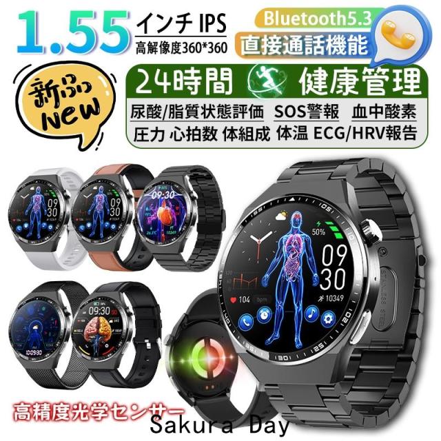即日発送 スマートウォッチ 血糖値 血圧 尿酸値測定 BMIモニタリング 1.55インチ 通話機能付き 医療レベル心電図ECG+PPG 心拍数 血中酸素 睡眠管理 月経周期トラッキング リモートケア 呼吸訓練 ストレス監視 万歩計 音声アシスタント SOS警報機能 天気予報 SOS緊急連絡 150+運動モード着信&メッセージ通知 Smart Watch iPhone Android対応 日本語取扱説明書 腕時計 男女兼用 贅沢ギフト ip67防水 日本語取り扱い説明書付き 活動量計 レディース メンズ スマートブレスレット大画面 着信通知 睡眠検測 アラーム 時計 腕時計 彼女 彼氏 ススマートバンド スポーツウオッチ 男性 女性 恋人 友人 母の日 プレゼント 父の日 敬老の日