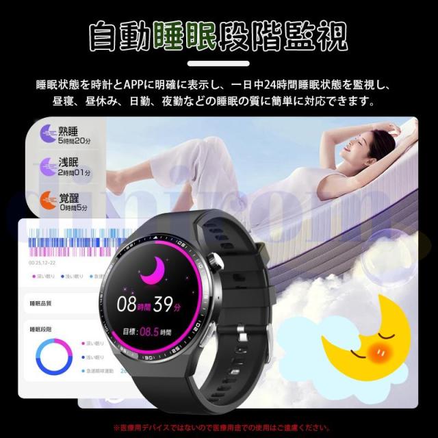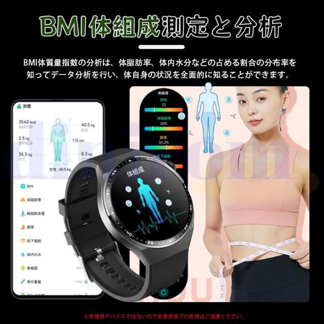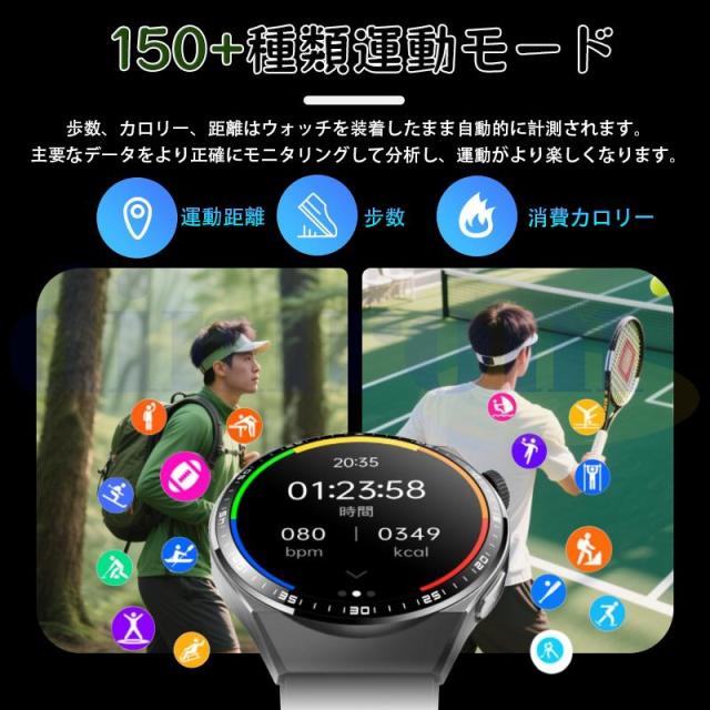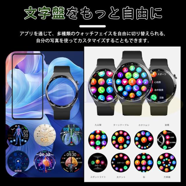 【1.55inch高精細大画面&幅広い互換性】スマートウォッチは、360*360解像度フルHDの1.55inchタッチスクリーンを搭載され、高感度なタッチセンサー、鮮明な画質で、優れた視覚体験とより良いインタラクティブな体験をち提供いたします。見た目もおしゃれ、Bluetooth5.3チップを搭載、iOS9.0 / Android6.0と以上のスマホは対応され、コンパクトで僅か37.5グラムの超軽量デザインで、運動や日常に違和感なく快適に着装使えます。