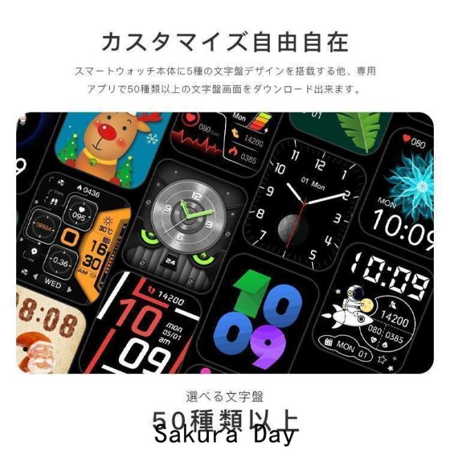 【Bluetooth5.3通話機能付き&着信通知】 このスマートウォッチは業界先端Bluetooth5.3を採用し、通信速度、通信範囲、バッテリ寿命、接続の安定性が飛躍的に向上され、前のスマートウォッチより安定しています。専用アプリと接続するとスマートウォッチで、着信やメッセージの受信、LINE、Twitter、Facebook、メール、Instagramなどのアプリからの通知を表示し、内容も確認できます。スマートウォッチで、直接に電話をかけることや着信拒否も実現可能。また電話の連絡先を同期したり、通話履歴、通話記録も保存できます。 ※ご注意:Bluetooth通話&メッセージ通知と音楽再生機能を利用するとオーディオ bluetoothとペアリング接続が必要です。