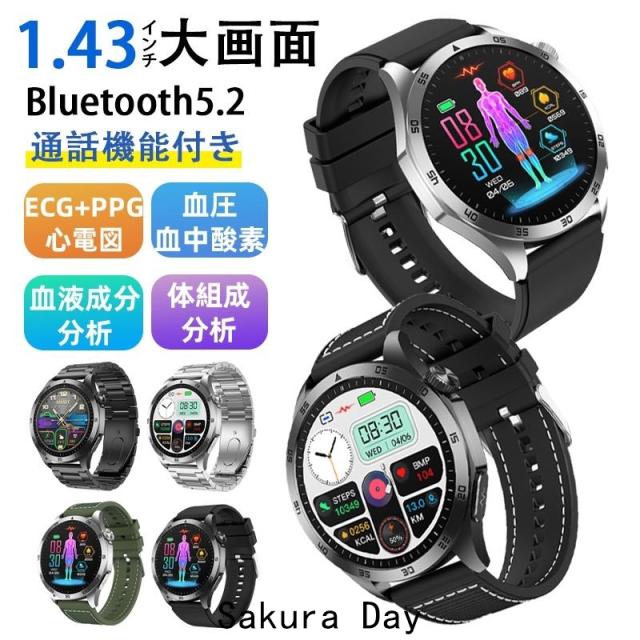 即日発送 スマートウォッチ 血圧 血糖値測定 BMI 脂質 尿酸値 血中酸素 心拍数 睡眠管理 体温監視 呼吸訓練 女性生理管理 リモートケア 活動量計 歩数計 iPhone Android対応 通話機能付き 着信&メッセージ通知 腕時計 男女兼用 敬老の日 プレゼント