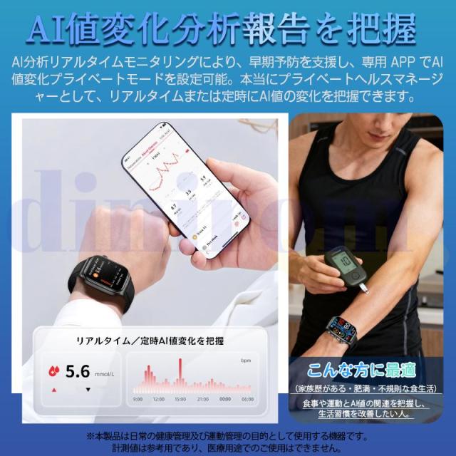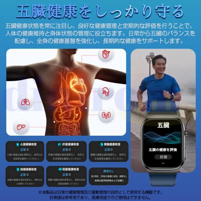 スマートウォッチ 五臓健康管理 血糖値 血圧測定 血中酸素 尿酸 血中脂質 心拍数 BMI ECG心電図 睡眠監視 体温検知 ストレス監視 呼吸訓練 女性生理管理 懐中電灯 リモートケア 天気予報 多運動モード 文字盤自由設定 通話機能付き 着信&メッセージ通知 iphone Android対応 活動量計 IP68防水 腕上げ点灯 遠隔カメラ SOS緊急連絡 目覚まし時計 音楽コントロール 座り過ぎ通知 AI音声アシスタント トーチ タイマー 長持ちバッテリー 磁気吸引充電 日本語説明書付き スポーツウォッチ 腕時計 メンズ/レディース プレゼント 贅沢ギフト 父の日 母の日 敬老の日 誕生日 夏祭り