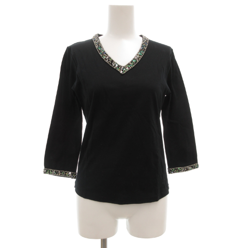【中古】ボン サンス Bon Sens Vネック カットソー 七分袖 38 ビーズ スパンコール装飾 黒 ブラック /GV レディース