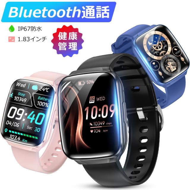 スマートウォッチ Bluetooth通話 1.83インチ大画面 血中酸素 心拍 歩数 カロリー 健康管理 スマートブレスレット レディース リストバンド メンズ 腕時計 着信通知 IP67防水 睡眠 音楽再生 Siri 生理 300mAh大容量バッテリー iPhone Android ギフト QS30 送料無料
