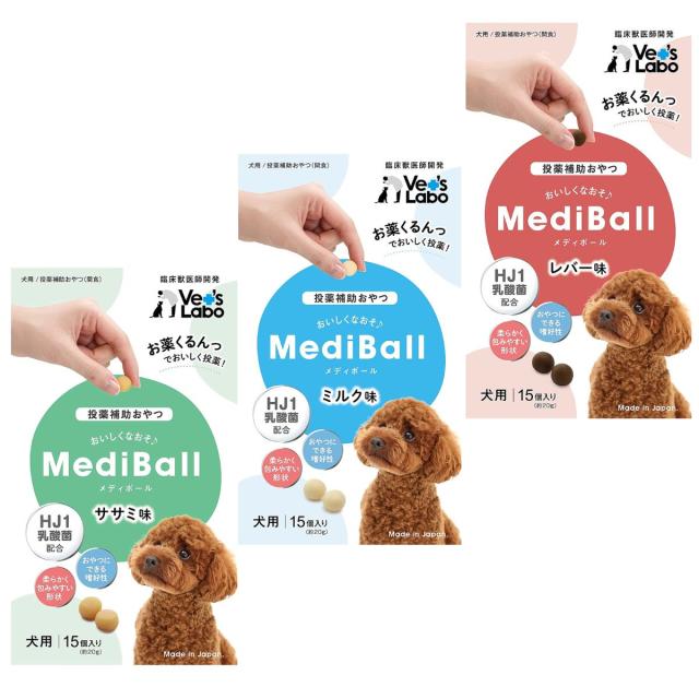 メディボール 犬 薬 飲ませる おやつ 投薬 投薬補助 人気3種 (ささみ ミルク レバー) 15個入 mediball