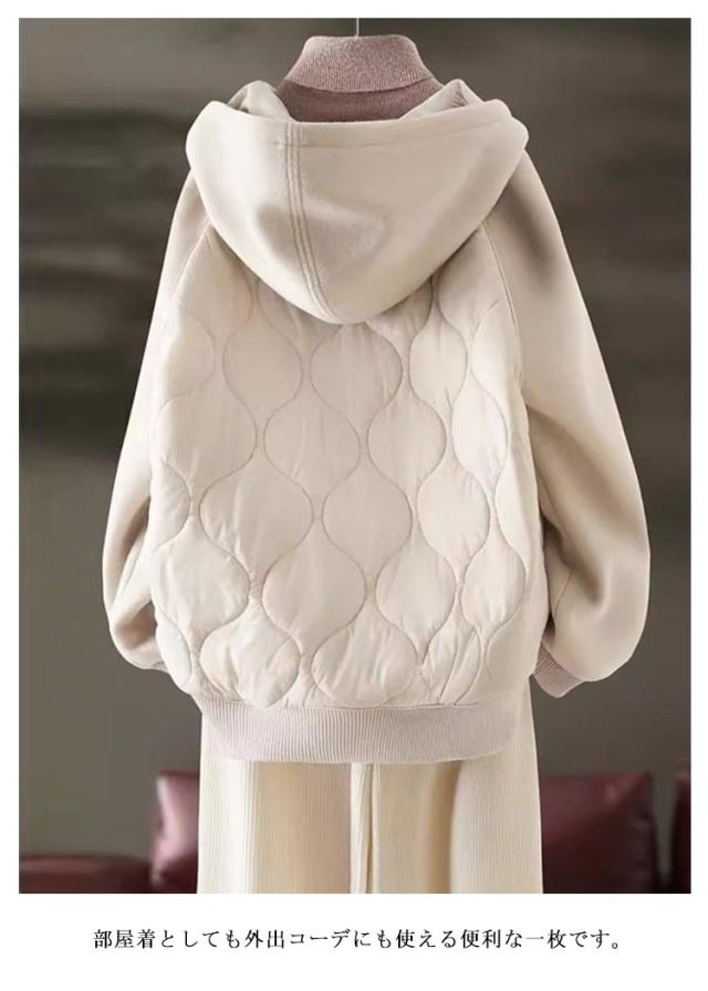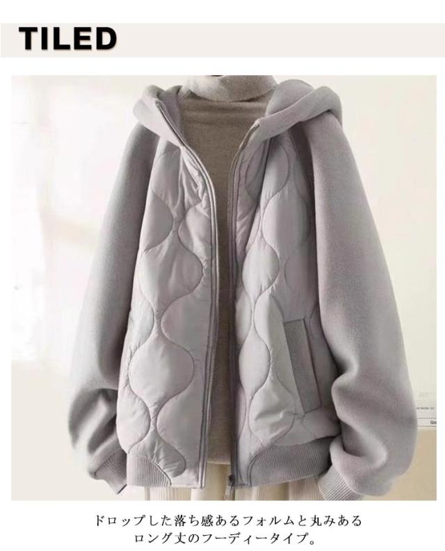 ブルゾン パーカー 中綿 キルティング コート フーディ 中綿 中綿コート アウター パーカー ロング ジャケット フードパーカー 中綿ジャケット 羽織 保温 体型カバー 軽量 暖かい お尻が隠れる 防寒 中綿 秋 冬 春