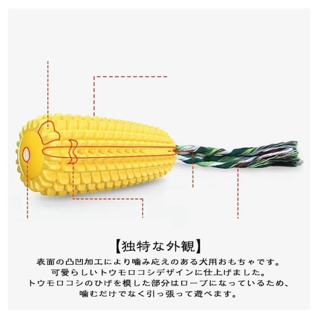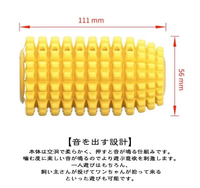| 音を出す犬用噛むおもちゃ ●この犬用おもちゃは、歯磨き効果もあり、ペットの歯を清潔に保ち、口臭を防ぎもちゃで遊びながら、口の中の健康を守ることができます。 ●【独特な外観】表面の凸凹加工により噛み応えのある犬用おもちゃです。可愛らしいトウモロコシデザインに仕上げました。トウモロコシのひげを模した部分はロープになっているため、噛むだけでなく引っ張って遊べます。小型犬、中型犬、大型犬を問わず、犬の興味をより簡単に刺激できます。 ●【音を出す設計】本体は空洞で柔らかく、押すと音が鳴る仕組みです。噛む度に楽しい音が鳴るのでより遊ぶ意欲を刺激します。一人遊びはもちろん、飼い主さんが投げてワンちゃんが拾って来るといった遊びも可能です。 ●【実用性高い機能】日頃から噛む遊びをすることで自然とデンタルケアに繋がります。運動不足やストレスを解消できる一石二鳥のアイテムは、小型犬〜大型犬まで幅広い犬種に対応しています。 ●【犬のお気に入り】ペットの噛みたい欲求を満たし、興味を刺激し、ペットの幸福度を高めるために継続的に使用できる犬用おもちゃです。 ●【安全&無毒】高温や腐食に強いTPR素材を使用しており、無毒無味で長期間使用でき、環境にやさしくペットには非常に安全です。犬の歯の健康や多動症などの問題防止のために、適切な歯磨き道具を選ぶことで、ペットの精力を最大限に解放し、歯の健康を保証することができます。 | |