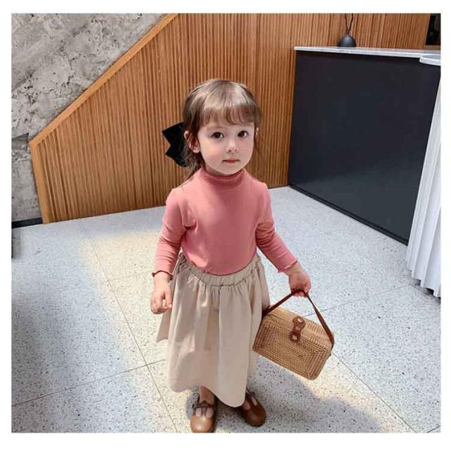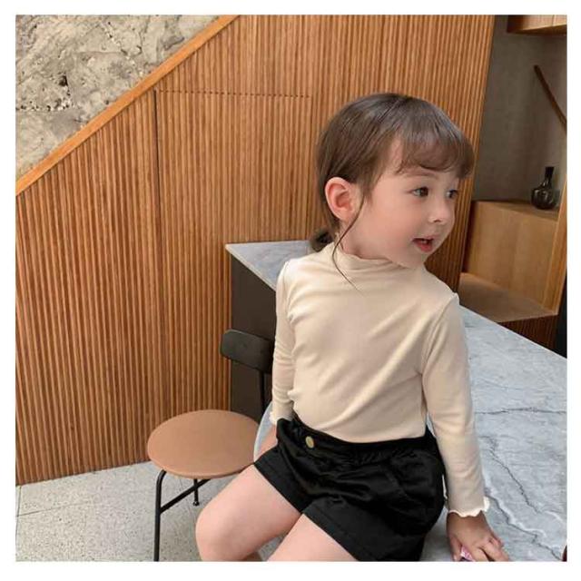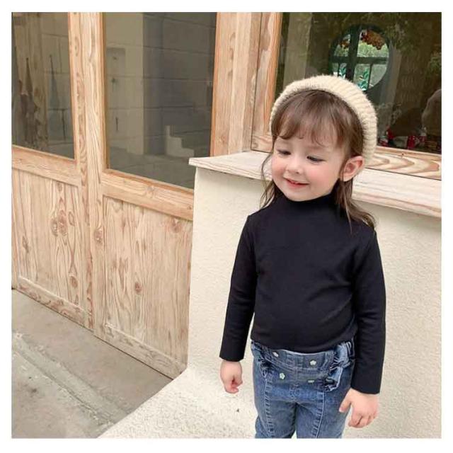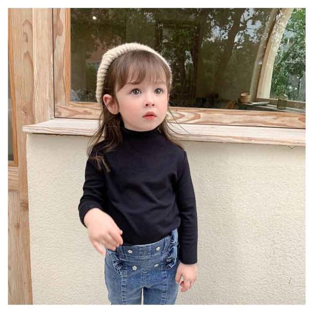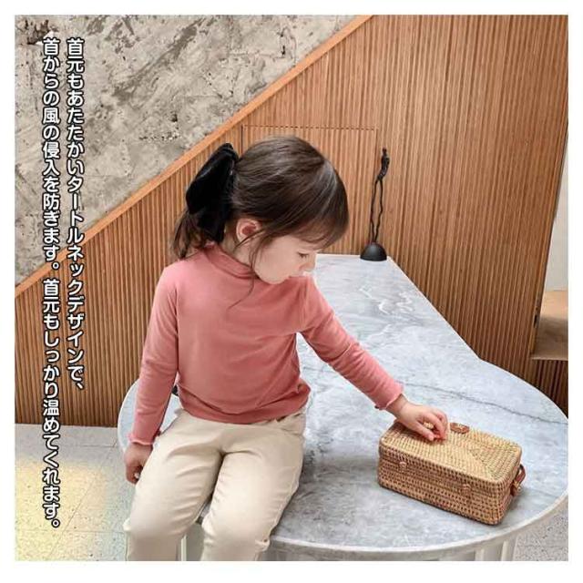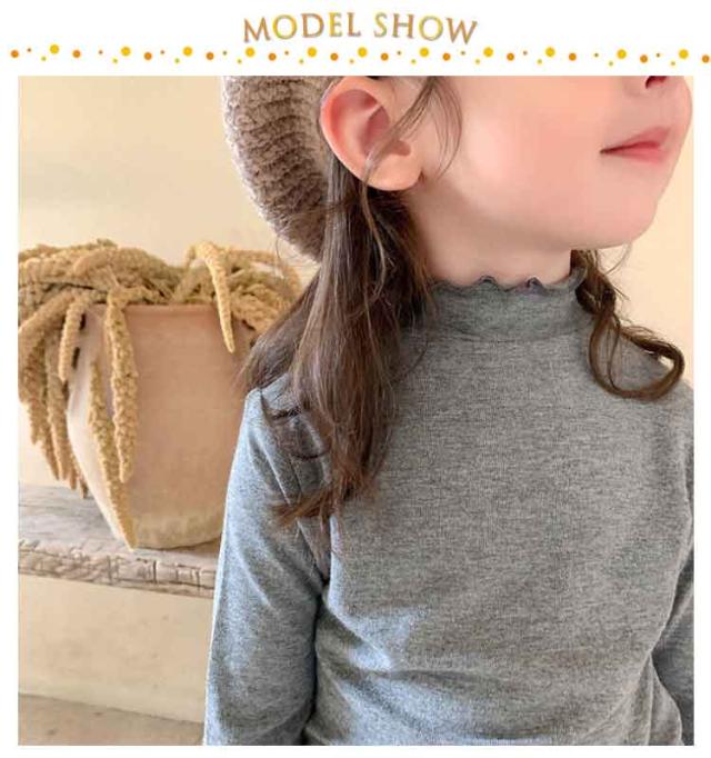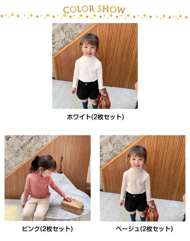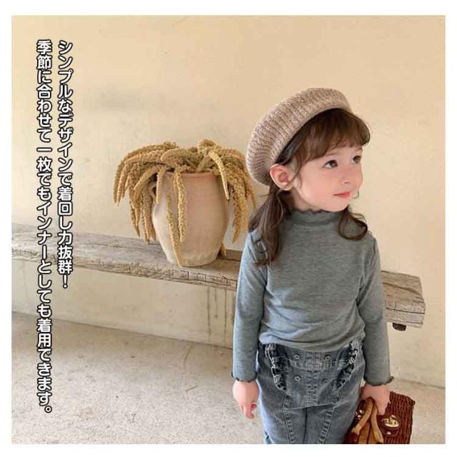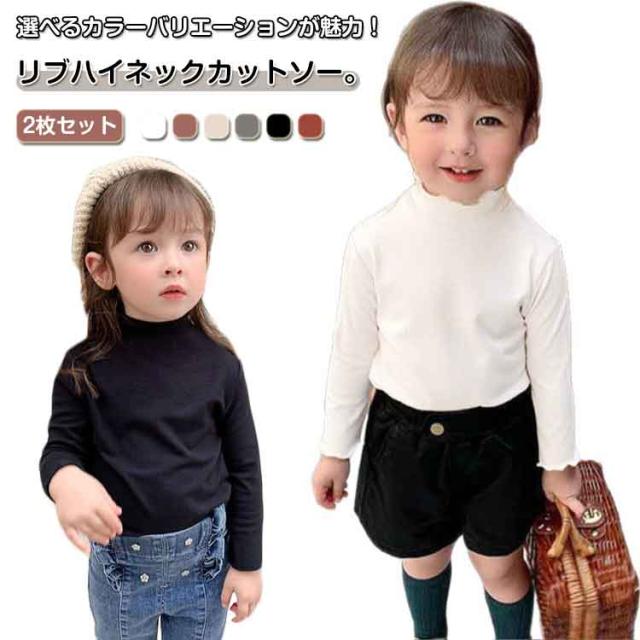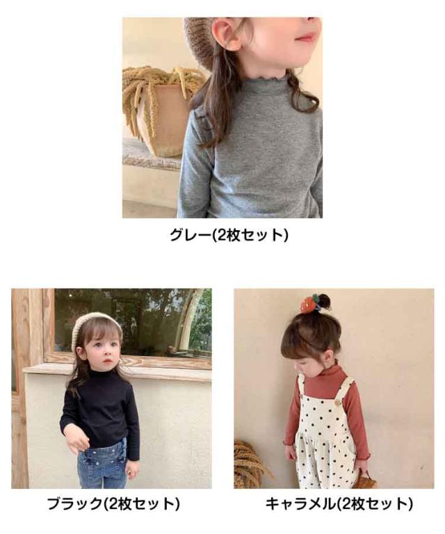 2枚セット 子供服 100cm キッズ 女の子 Tシャツ タートルネック ハイネック リブ トップス 2枚セット ロンT カットソー 肌着 部屋着 長袖 ベビー服 110cm 120cm 130cm 140cm 150cm 160cm フリル シンプル ガーリー ナチュラル